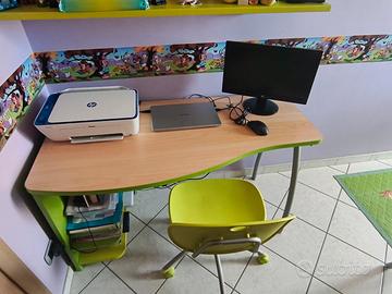 Vendo cameretta completa marca Colombini, in ottime condizioni, solida e di qualità. Composta da: • Letto a castello con scaletta • Secondo letto estraibile inferiore • Cassettoni contenitore e tavole estraibili • Armadio a 4 ante capiente · Scrivania angolare · Sedia con ruote • Mensole abbinate Colore verde e legno chiaro, struttura robusta e ben tenuta. Disponibili su richiesta anche: Materassi, piumoni e tappeto coordinato (extra da concordare).