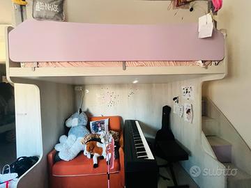 Vendo cameretta in perfetto stato con un comodo soppalco con letto ad una piazza e mezza, capiente scaletta contenitore, 2 ante da 45 cm. (Regalo poltrona letto in foto arancione marca poltronesofà e materasso 1 piazza e mezza).