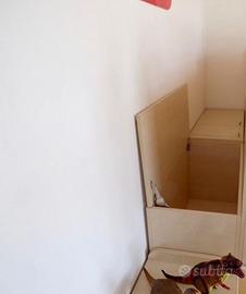 Completa il tutto una capiente armadiatura dotata di ante con cerniere deceleranti.