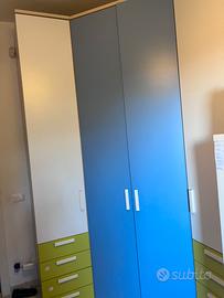 Come da descizione vendo cameretta colombini golf con letto a castello con cassettoni contenitori nel letto inferiore, scala contenitore, cabina armadio ad angolo e scrivania con cassettiera.