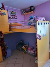 Cameretta con ampi capienti armadi, letto sopraelevato con scala contenitore, comodino