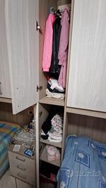 Cameretta per ragazzi o bambini ( utilizzabile anche come matrimoniale)misure: 3.85 per 2.05 per 0.60, come NUOVA, di qualitá NO MONDOCONVENIENZA, è robustissima, è molto capiente, ha sotto un letto due cassettoni e nell'altro un contenitore a ribalta. No materassi. smontaggio e trasporto a carico acquirente