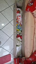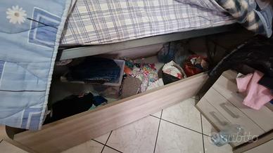 Cameretta per ragazzi o bambini ( utilizzabile anche come matrimoniale)misure: 3.85 per 2.05 per 0.60, come NUOVA, di qualitá NO MONDOCONVENIENZA, è robustissima, è molto capiente, ha sotto un letto due cassettoni e nell'altro un contenitore a ribalta. No materassi. smontaggio e trasporto a carico acquirente