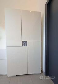 I mobili per cameretta Alondra sono :Un mobile compatto composto da una culla da 70x140 cm (con letto estraibile nel cassetto inferiore ), cassettiera con 4 cassetti e zona fasciatoio che diventerà letto 90x200 cm, scrivania, tavolino e libreria. Armadio 2 Ante e Cassettiera, per la trasformazione della cameretta potete consultare il sito Alondra nella sezione lettini trasformabili
