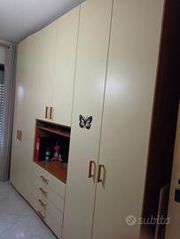 Come da titolo, per conto fi un amico: cameretta color panna e ciliegio, completa con armadio sei ante,scomponiboli, misure L 270 H 260, profondità 60, con cassettiera e ripiani : oltre due lettini da 190 cm x 90 , 2 comodini, scrivania da 137 cm x 45 profondità , H 90 cm completa il tutto una doppia mensola /libreria Ottimi materiali ed in ottimo stato e ben tenuta, come in foto. Non sono compresi i materassi, piumini e cuscini. Solo persone serie e affidabili, no perditempo. Non spedisco e lo smontaggio ed il trasporto sono a carico vostro. Il prezzo non è trattabile. La camera sarà disponibile dalla fine di aprile ai primi di maggio. La cameretta si trova a Capurso (BA) al primo piano.
