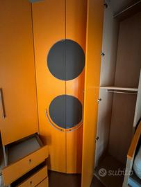 Doppio letto a ponte con materassi, scaletta e scrivania estraibile
