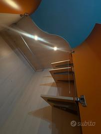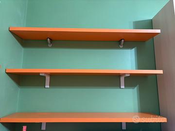 Armadio 4 ante con cabina e luci, servetto appendiabiti 2 comodini , una cassettiera maxi , una libreria con Antine, 3 mensole , cubo per oggetti , 2 letti con reti e materassi come nuovi le ante sono laccate colore arancio visibile su appuntamento tenuta in modo maniacale