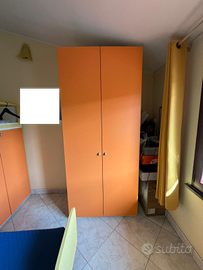 Struttura letto a castello completa di armadio e letto inferiore. Le scalette laterali fungono da cassetti molto capienti, e possono essere smontati e rimontati per riempire anche lo spazio dietro di loro. Tutta la passerella per il letto superiore ha la possibilità di essere aperta ed utilizzata come contenitori molto capienti anch'essi. Entrambi i letti hanno delle mensole per arredamento extra. La struttura comprende anche un armadio molto capiente con ripiani annessi. Misure struttura: -Lunghezza (da ringhiera scale alla fine dell'armadio): 2,60m -Profondità (calcolata in base alla lunghezza delle scalette): 1,45m -Altezza: 1,70m Armadio (separato) come nuovo. Le sue dimensioni sono: -Larghezza: 1,00m -Altezza: 2,25m -Profondità: 60cm Scrivania apribile (ad L) con cassetti, retro pannello, mensole sopraelevate e sedia incluse. L'altezza è di circa 1,55m, la lunghezza della scrivania aperta è di circa 1,45m. La struttura è in legno. Pochi segni di usura dovuti al tempo, ma è come nuova.