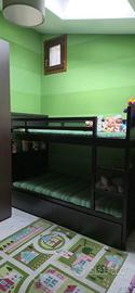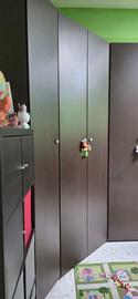 Cameretta completa di Armadio Angolare 6 ante battenti a mo di cabina 170x260h250, letto a castello completo di materassi e cassettoni con rotelle a scomparsa 200x90, cassettiera 6 cassetti 80x125 , mobile componibile 8 cubi con accessori 75x150. In ottimo stato