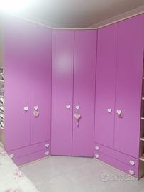 Il tutto in una delicata tonalità rosa/magenta, impreziosita da pomelli a forma di cuore: perfetta per una stanza allegra e funzionale.
