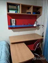 •Scrivania ampia + mensolone sospeso + pensili sovrastanti