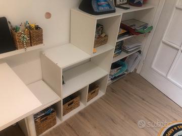 Vendo camera io ottime condizioni generali. Al momento ancora montata. Completa di tutti i mobili come in foto. Letto a castello con armadio usato pochissimo, scrivania con cassetti. Due armadi a doppia anta grandi, una cassettiera e due scaffali come in foto. Preferibile vendita in blocco, ma possibilità di vendita degli articoli separatamente con prezzo da concordare.