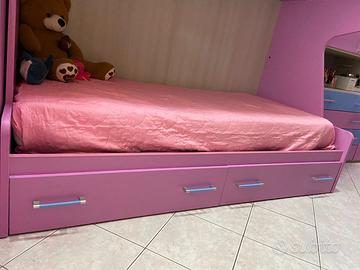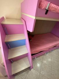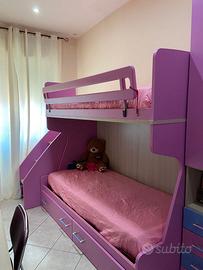 Cameretta completa con letto a castello, armadi di cui uno ad angolo e uno con 4 cassetti, sponda anticaduta e scala portavani. Condizioni ottime. 600€ trattabili.