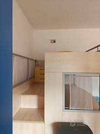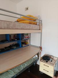 Cameretta completa di 2 letti singoli, armadio a tre ante, 2 scrivanie, 2 comodini e una boiserie.