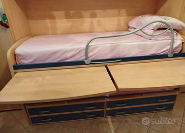 •2 letti(quello di sotto estraibile con rotelle)con cassetti e 2 scrivanie a scomparsa.