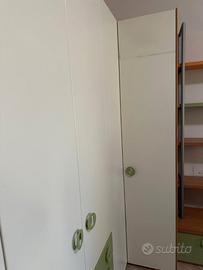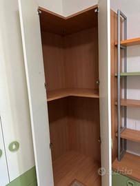 Cameretta in ottimo stato completa di un ampio armadio ad angolo con cassetti, un letto da 1 piazza e mezzo, ampia scrivania con mobile con cassetti e scaffaliera a muro a più piani. PREZZO TRATTABILE