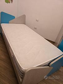 Vendo come da titolo cameretta completa Febal Casa composta da : - letto - comodino - armadio cabina molto spazioso - n.2 librerie sospese - scrivania Tutti i mobili che compongono la cameretta sono nuovi , comprati e montati in stanza e mai utilizzati se non per poggiare vestiti o decorarli come da foto. La cameretta è in vendita poiché dobbiamo riorganizzare la stanza per più bambini invece che uno. Disponibile la vendita singola dei componenti. Vendita anche a distanza, da capire il prezzo della spedizione in base al peso. È possibile richiedere altre foto in privato. PS: sono esclusi gli accessori che si vedono in foto e il materasso.