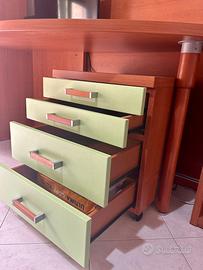 -due scrivanie con cassetti (una cassettiera è con ruote, puó essere usata come comodino)
