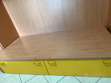 Vendo cameretta completa composta da armadio angolare, pensili superiori, cassettiera e zona letto/scrivania.