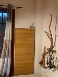 Vendo mobili per una cameretta completa in legno Comprende: • armadio con scrivania (1^ foto) • armadio per vestiti • letto in legno con mobile dietro (materasso incluso! ) • scarpiera • scrivania per computer con con parte sotto allungabile