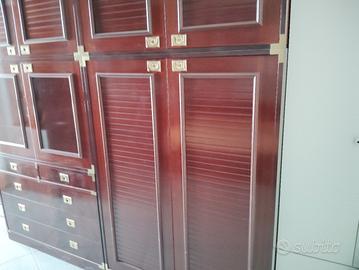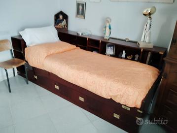 cameretta Belligotti modelloNavy composta da armadio con cassettiera, scrivania, letto singolo con letto estraibile e vano porta oggetti a L perimetrale al letto.