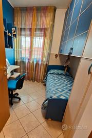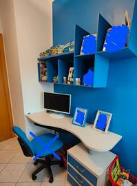 Letto singolo con materasso compreso, armadio a soppalco con 4 ante, all interno 5 mensole super robuste, lateralmente armadio alto, 4 ante, con doppio bastone per appendere e una mensola. Scrivania lunga con 3 cassetti, la sedia in foto non é compresa, mensole a forma di cubi tutto abbinato al colore dell armadio. Ci sono alcuni segni di usura, il colore si e un poco consumato dietro la maniglia di alcune ante. Il mobile e stato completamente gia smontato e riposto in garage accuratamente imballato. Chiunque sia interessato mi contatti e ci mettiamo d'accordo per venire a vederlo e ritirarlo o per avere altre foto. Le misure sono scritte tutte nella fotografia.
