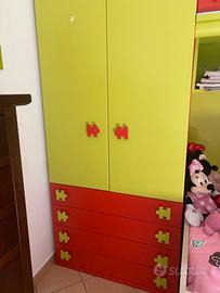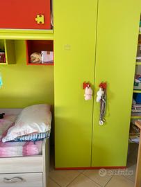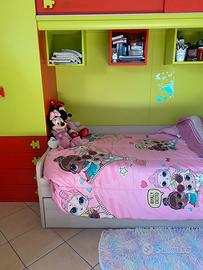 Cameretta ragazzo completa di lettino con materasso e cassettoni sotto