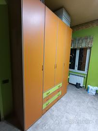 Armadio quattro ante con mensole angolari Scrivania con due ante e una cassettiera 3 cubi mensola E due colonne per lettino Trasporto e montaggio a carico dell’acquirente