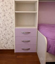 Vendo bellissima cameretta completa in stile moderno, colore bianco e lilla, ideale per bambini/ragazzi. La composizione comprende: •Letto a soppalco con secondo letto inferiore •Armadio integrato con ante e ripiani •Cassettiera con 3 cassetti •Mensole e vani contenitore •Struttura compatta salvaspazio La cameretta è in ottime condizioni, ben tenuta e molto funzionale, perfetta per ottimizzare gli spazi in una stanza piccola. Colore delicato e adatto a diversi stili di arredamento. 📏 Misure disponibili su richiesta 📍 Ritiro a carico dell’acquirente Prezzo trattabile. Contattami per maggiori informazioni o per venire a vederla!