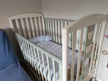 Descrizione Vendo cameretta completa PALI Letto (con materasso) Armadio ( 2 ante e un cassettone) Fasciatoio ( 3 cassettoni e apertura per bagnetto) Misure Fasciatoio H89 L76 P45 Misure Armadio H180 L100 P52 Misure Lettino H100 L134 P72 Trattabile Trasporto a vostro carico