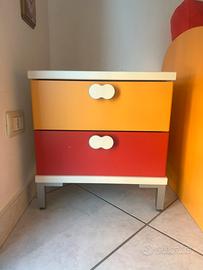 cameretta completa di: 1 comodino letto/ divano con cassettoni 1 settemino 1 armadio basso a 4 ante 1 libreria 3 mensole Prezzo da concordare