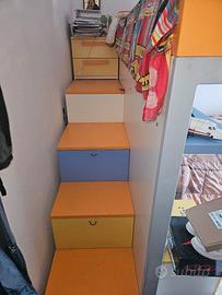 vendo cameretta completa a ponte sopra letto singolo e sotto una piazza e mezza con materassi quella ad una piazza mai usato, comodino scrivania e sedia più armadio due ante e mezza + cassettiera TRATTABILE