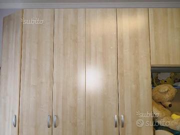 in ottimo stato lunghezza parete armadio 430 cm , larghezza 240 cm, altezza 264 cm. completa di cassettiere interne ed esterne basse, mensole e accessori . Disponibile a parte anche una scrivania.