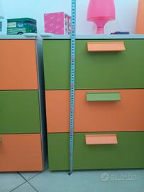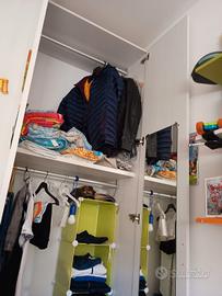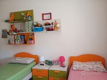 Composta da armadio 4 ante più libreria latere, due letti più alti per poter metterci scatole due comodini e una scrivania. Più mensole .