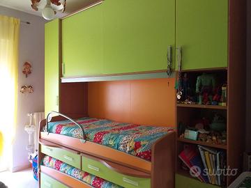 Usata poco, come nuova, grande armadio a 6 ante con interno cassetti e corredato di mensole libreria misure 270×260 dall'altra parte camera a ponte con due letti di cui uno estraibile con ante armadio laterali e superiori corredati di cassetti e mensole. Posso allegare fattura acquisto. Pagata 5000,00 la vendo per meno della metà prezzo. Le mensole sono robuste e alte così come robusta e ottima è tutta la struttura. Le condizioni sono ottime non ci sono rotture nè graffi. Lo smontaggio e il ritiro sono a carico dell'acquirente. Possiamo accordarci diversamente ma seguendo altre tempistiche laddove dovessi provvedere io allo smontaggio. Preferisco il ritiro di persona onde evitare che qualcosa si possa graffiare o rompere perché ho brutte esperienze con i corrieri. Non è possibile effettuare reso! Posso inviare altre foto se davvero interessati o un video. No perditempo!