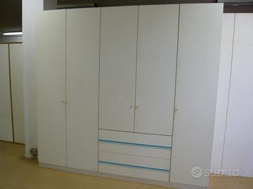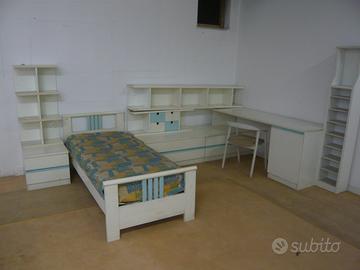 dimensioni: parete letto cm. 350, parete scrivania cm. 200, capiente armadio a 5 ante tamburate cm. 250 h. 236