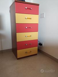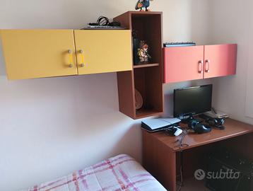 Cameretta completa con letto una piazza e rete a doghe, comodino 2 cassetti, settimanale 6 cassetti, armadio 4 ante 4 cassetti,pensili a muroe scrivania (acquistata da mobilificio,non grandi distribuzioni)