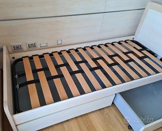 -Letto singolo in legno robusto con rete listellare e coppia di cassettoni estraibili