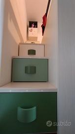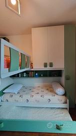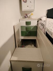 Cameretta con 2 letti + uno estraibile. Gradoni (con cassetto )comodissimi per accedere al letto superiore. Vano contenitore in cima alle scale. Due cassettiere "spostabili". Vendiamo causa trasloco