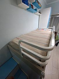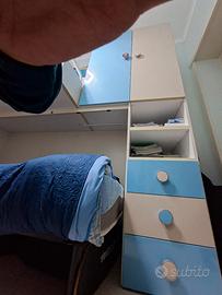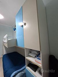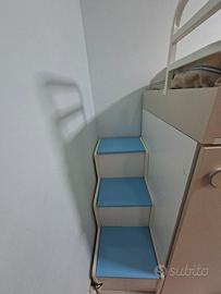 Cameretta con 2 letti a castello. compreso la scala con vano porta oggetti. 2 letti. 2 armadi e 3 cassetti. misura della cameretta 3m più 45cm larghezza della scala. totale lunghezza 345 cm. NB. la scala si puoʻ spostare.