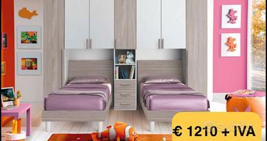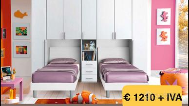 Vendo struttura cameretta salvaspazio con due letti singoli per bambini e armadio integrato nella parte superiore. Soluzione intelligente tipo “a incastro”, perfetta per sfruttare al massimo lo spazio della stanza.