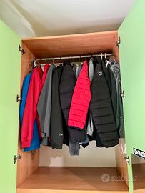 -Un armadio a 6 ante con: 5 ripiani con attaccapanni + 1 vuota e 4 cassetti color “zucca”