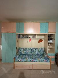 Vendo cameretta con 3 letti trasformabili a giorno grazie ai cuscinoni in dotazione . Come si vede dalle foto un letto è a scomparsa, ampi cassettoni e costruita con un ottimo legno. Per info chiedete pure