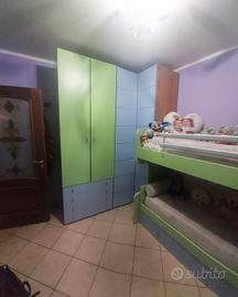 Cameretta con 3 posti letto, struttura di colore verde e glicine. ottime condizioni.