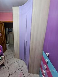 vendo cameretta in buone condizioni. la cameretta è componibile in diverse modalità. due letti, scrivania, angolo cabina con mensole e asta all'interno, scarpiera davanti con altre mensole. caratteristica delle porte, come si può vedere, che sono curve. Costata 5 anni fa 4200€. vendo per esigenze diverse.