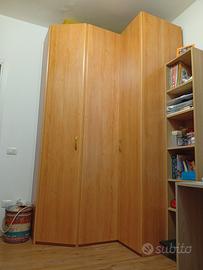 Cameretta con armadio a ponte più armadio ad angolo( 310 MT totali ) in foto la vedete divisa causa spazio della camera ma la cabina armadio ad angolo era montata lato sx della cassettiera. Smontaggio e trasporto a carico dell'acquirente