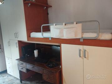 Vendo in ottime condizioni cameretta con letto a soppalco: lunghezza 390 cm altezza 260 cm profondità 90 cm La scrivania è ESCLUSA Smontaggio e ritiro a carico del comprato