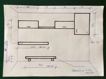 Cameretta composta da una boiserie con guide in alluminio a cui appendere elementi pensili nella posizione desiderata