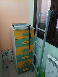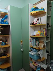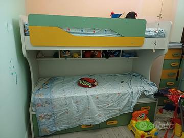 letto a castello compreso di 2 materassi a molle e con scaletta removibile, settimino e cabina armadio con angoli libreria e angolo scarpiera. misure 138,5cm x 149cm. disponibile da subito prezzo 1000. contattatemi al numero 327 491 6198.