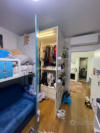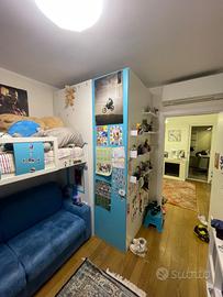 salve come da titolo vendesi cameretta completa di tutto il necessario per fino i giocatoli la cameretta e composta di un letto sopra e di divanoletto matrimoniale come si vede in foto una bella cabina armadio scrivania più sedia più mobile per i giocattoli con dei giocattoli compresi per altre info non esitate nel scrivermi tutto con fattura prezzo trattabile